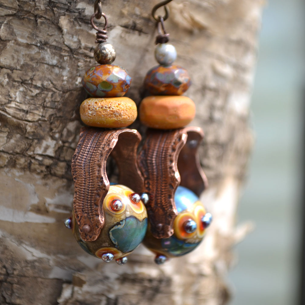 Copper Snakeskin Bails, gorgeous Lampwork beads by Karin Hruza of Beadfairy.